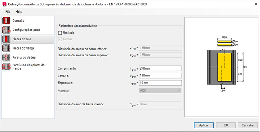 - Parâmetros das placas da alma