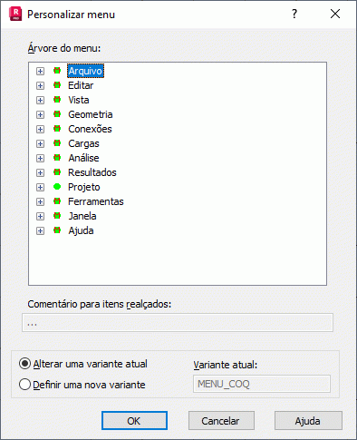 Nessa caixa de diálogo, também é possível alterar uma variante de menu atual ou definir uma nova.