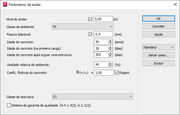 - Coefic. fluência do concreto – o parâmetro usado para calcular automaticamente o coeficiente de fluência.