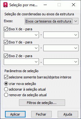 Na parte inferior da caixa de diálogo, as seguintes opções permitem determinar os parâmetros de seleção usando eixos de estrutura:
