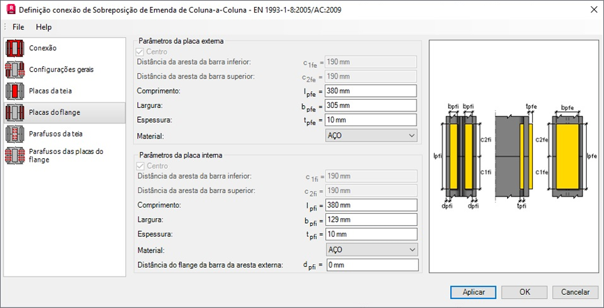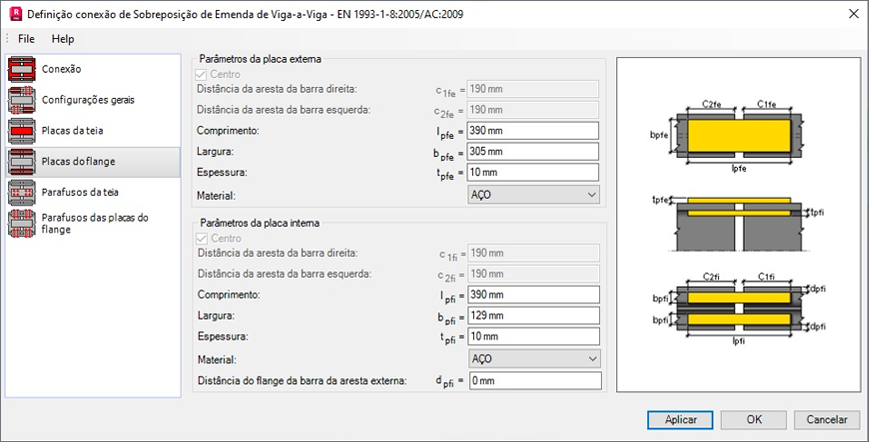 - Placas superiores da mesa e Placas inferiores da mesa para conexões de sobreposição de emenda de Viga-para-Viga.