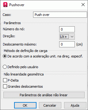 - Parâmetros de análise não linear – Abre uma caixa de diálogo que permite configurar as opções da análise não linear.