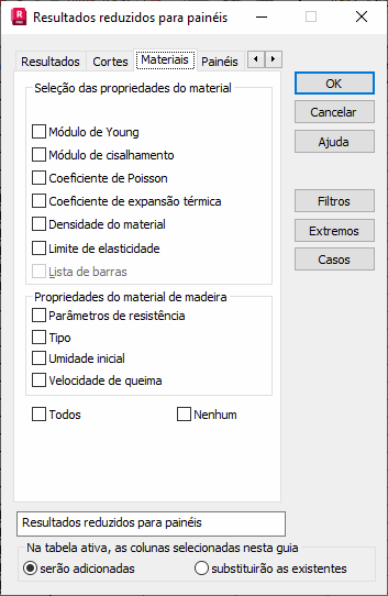 Selecione a guia Materiais na caixa de diálogo Colunas para selecionar as propriedades do material.