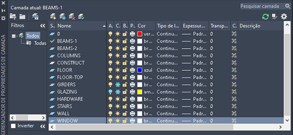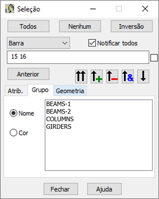 Ao importar arquivos DXF ou DWG com elementos atribuídos a camadas, os grupos são criados no modelo do Robot Structural Analysis para cada camada. Os membros são atribuídos automaticamente aos grupos com base na atribuição de camadas.