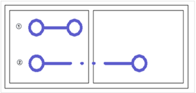 - Os Contornos da zona do sistema rotulados como 1 são anexados ao equipamento de zona que tem um comportamento do tipo Um por espaço.