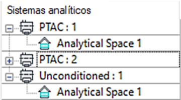 O espaço nomeado Espaço analítico 1 é um Equipamento de zona do tipo Não condicionado e do tipo PTAC, o que não é válido.
