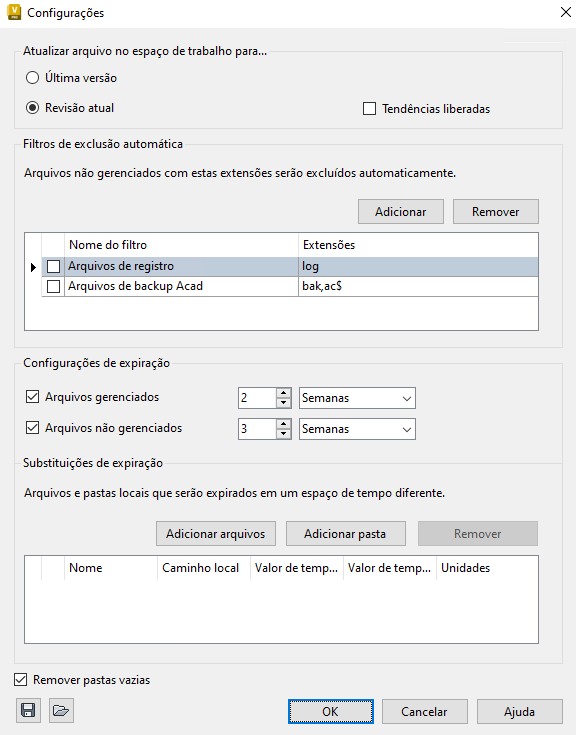 Essa configuração aplica-se a todos os arquivos gerenciados e não gerenciados no espaço de trabalho local. Substituições de expiração pode ser definida para pastas e arquivos específicos para mais preciso expiração critérios.