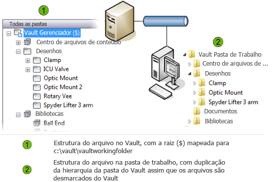 A pasta de trabalho contém somente leitura cópias de arquivos que foi efetuado o check-out do Vault.