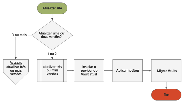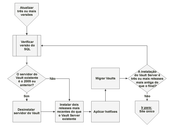 Siga as instruções nesta seção se o servidor do Vault for três ou mais versões mais antigo que a versão para a qual você está atualizando.