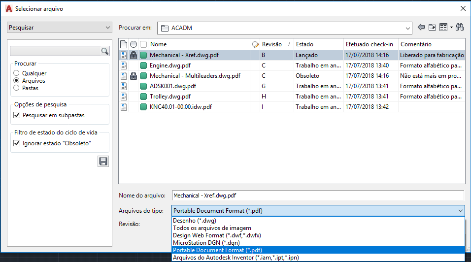 O AutoCAD permite que arquivos PDF sejam anexados aos desenhos como subjacências. No entanto, só agora é possível anexar PDFs durante o check-in no Vault.