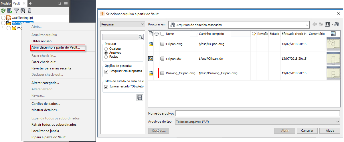 O Vault 2019.1 Update inclui o novo comando "Abrir desenho a partir do Vault". Esse comando ajuda o projetista do Inventor a abrir o desenho do projeto a partir do Vault com um único comando.