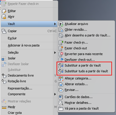 Com os novos comandos "Substituir a partir do Vault" e "Substituir tudo a partir do Vault", você pode ir diretamente para o Vault, pesquisar os componentes necessários e fazer a substituição.