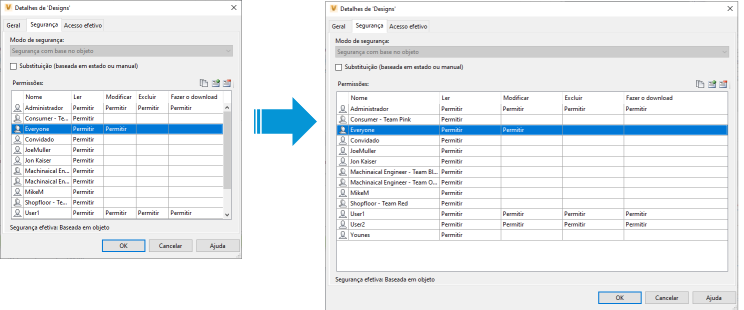Para trabalhar com mais facilidade na guia Segurança, a caixa de diálogo Detalhes agora é redimensionável.