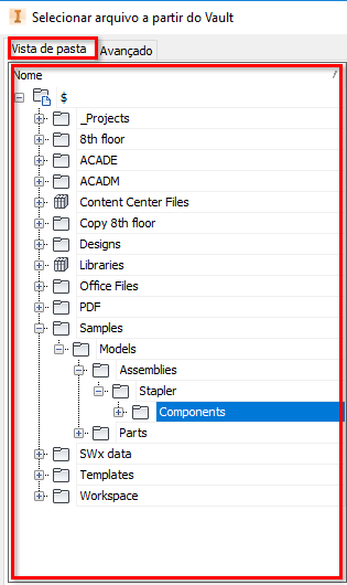 Com essa atualização, a caixa de diálogo Abrir a partir do Vault também mostra a Vista de pasta, o que facilita a navegação nos arquivos.