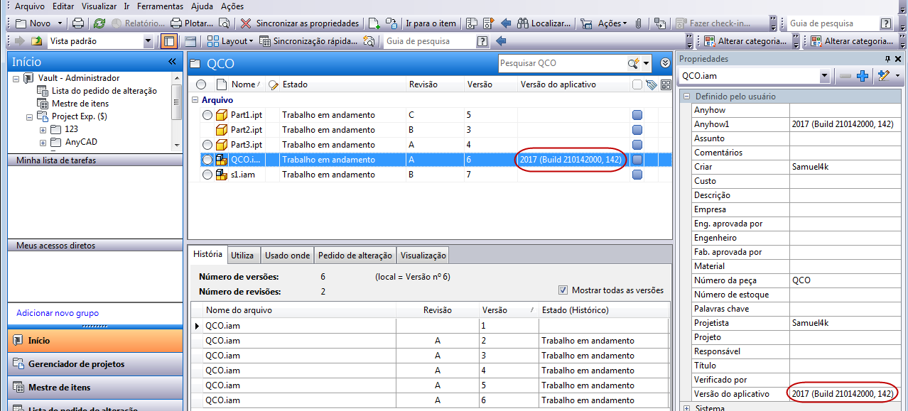 Atualmente, a propriedade Versão do aplicativo só se aplica a arquivos do Inventor.