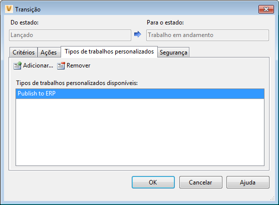 Agora, os administradores do Vault podem atribuir trabalhos personalizados para transições de ciclo de vida diretamente na caixa de diálogo Configurações do Vault. Ao definir ciclos de vida novos ou existentes, os administradores do Vault podem editar a transição de estado do ciclo de vida e usar a guia Tipos de trabalhos personalizados para especificar um trabalho personalizado.