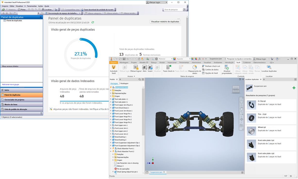 Incluímos um novo conjunto de recursos que ajuda a evitar o uso de peças duplicadas nos projetos. Com a Pesquisa de duplicatas, você pode distinguir os dados de forma inteligente e rápida. A capacidade de comparar geometrias no Vault aumentará significativamente a produtividade e, consequentemente, a agilidade do mercado. A capacidade de substituir arquivos WIP por componentes já lançados terá um impacto direto na qualidade dos produtos e na lucratividade da empresa.