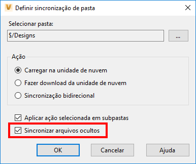 Com essa nova atualização, agora é possível incluir arquivos ocultos com sincronizações programadas no Project Sync. Os arquivos DWF gerados pelo sistema são sincronizados automaticamente com a nuvem quando essa opção é selecionada.