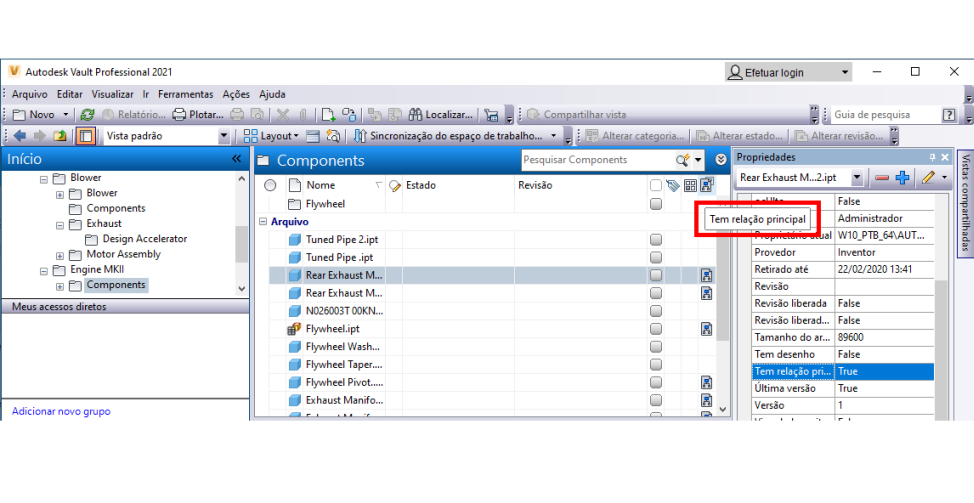 A nova propriedade de sistema "Tem relação principal" foi adicionada aos arquivos para permitir a limpeza e evitar a liberação de projetos não utilizados. Ela ajuda a identificar se os arquivos têm relações associadas.