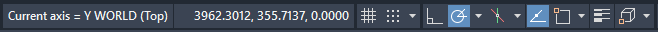 Знак ПСК с линиями осей RTUCS и строка состояния, отображающая данные о текущей оси: