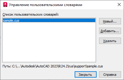 Создание нового пользовательского словаря. Созданный словарь будет иметь статус текущего.