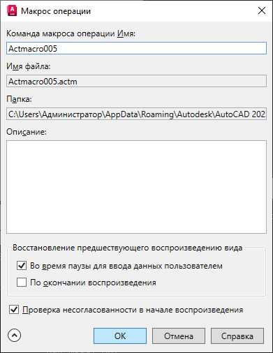 Задание имени текущего макроса операции. Можно задать новое имя вместо имени, отображаемого по умолчанию.