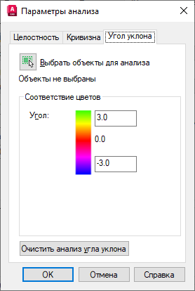 Задание значений углов для высокой и низкой величин уклона. Величина уклона — это измеряемый в градусах угол между нормалью к поверхности и плоскостью ПСК.
