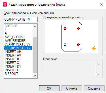 При нажатии "ОК" это определение блока открывается в редакторе блоков. При выборе <Текущий чертеж> текущий чертеж отображается в редакторе блоков.