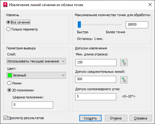 Ограничение числа обрабатываемых точек и определение времени, необходимого для извлечения геометрии.
