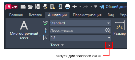 С помощью некоторых панелей ленты можно получить доступ к диалоговым окнам, относящимся к этой панели. Для отображения соответствующего диалогового окна щелкните кнопку вызова диалогового окна, обозначенную значком стрелки , в правом нижнем углу панели.