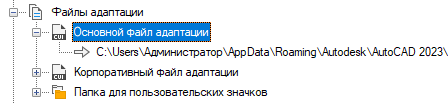 - В Проводнике перейдите к файлу <диск>:\Users\<имя пользователя>\AppData\Roaming\Autodesk\<название программы>\<номер версии>\<язык>\support\<имя файла адаптации>.cuix.