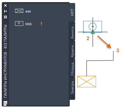 Быстрая вставка блоков с помощью инструментальных палитр