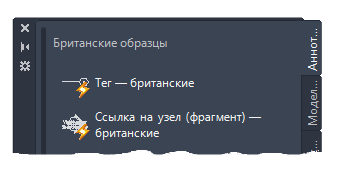 Прим.: В случае длинных имен блоков край палитры можно перетащить, чтобы увеличить ширину.