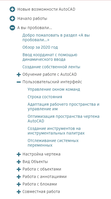 В справке по AutoCAD появилось новое меню «Быстрые ссылки», у статей «А вы пробовали...» появилось оглавление, а новый формат карточки обеспечивает более удобный доступ к обучающим видеороликам.