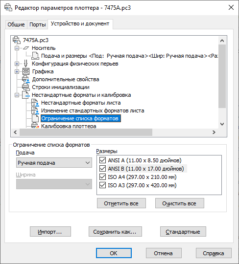 Управление многими параметрами файла конфигурации плоттеров (PC3).