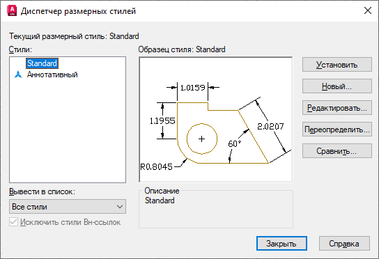 Имеющиеся в чертеже размерные стили определяют внешний вид размеров.