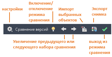 Используйте один из следующих способов доступа для открытия в текущем чертеже панели инструментов «Сравнение версий».