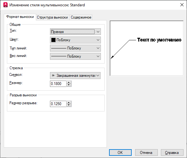 Диалоговое окно "Редактирование стиля мультивыносок"