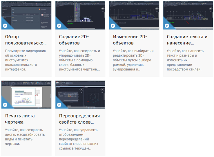 Чтобы облегчить просмотр обучающих видеороликов, добавлен раздел с карточками, которые активируются щелчком мыши.