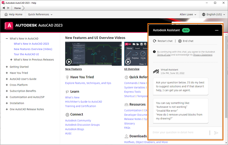 В справке по AutoCAD доступен новый помощник на основе искусственного интеллекта.