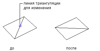 Перестановка ребер используется для изменения ориентации двух треугольных граней на поверхности, чтобы добиться более точной модели поверхности. Например, можно выполнить перестановку ребер для совпадения сторон треугольника с гребнями или низинами.