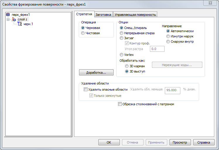 Доработка — нажмите эту кнопку, чтобы открыть диалоговое окно Опции черновой доработки по Z-слоям.