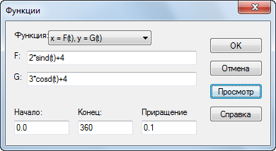 Пример функции x = F(t), y = G(t)