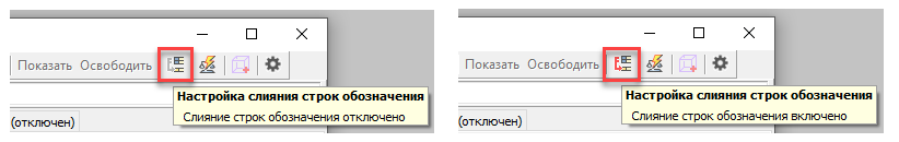 Значок для параметров слияния строк обозначения теперь может быть разным в зависимости от того, включен он или отключен. Это обеспечивает визуальное представление статуса в диалоговом окне «Спецификация».
