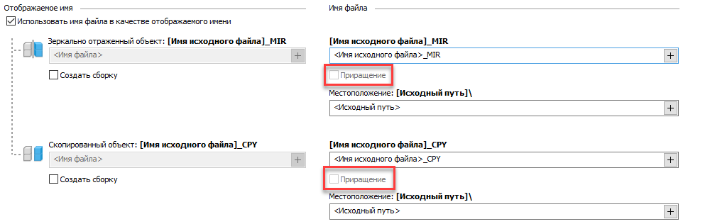 Инкрементную нумерацию для скопированных или зеркально отраженных компонентов теперь можно задать по умолчанию с помощью новых добавленных полей «Приращение» на вкладке «Зеркальное отражение и копирование» в диалоговом окне «Параметры приложения». Параметры по-прежнему можно выбрать в диалоговых окнах «Копирование компонентов» и «Зеркальное отражение компонентов».