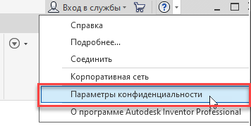 Параметры конфиденциальности в раскрывающемся меню «Справка»
