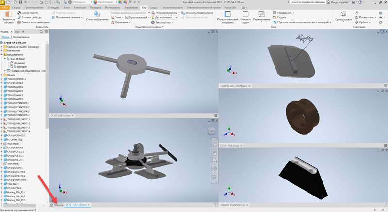 Вкладка Главная больше не задействуется при использовании инструментов упорядочения окон. Этот процесс включает только открытые модели и интерактивные учебные пособия.