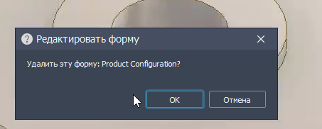 Окно подтверждения удаления формы iLogic