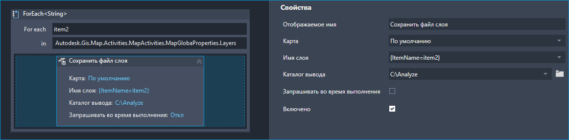 Так как это действие применяется ко всей карте, его не требуется повторять. Поэтому оно добавляется после действия «Повторить добавление слоев».