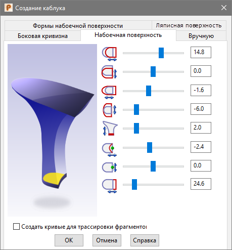Используйте вкладку Набоечная поверхность, чтобы задать параметры, используемые при создании набоечной поверхности каблука.
